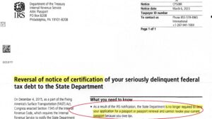 Este proceso de pasaporte denegado se puede deshacer. Para que el IRS emitiera un Aviso de Reversión de Certificación, tuvimos que convencer al gobierno de que: